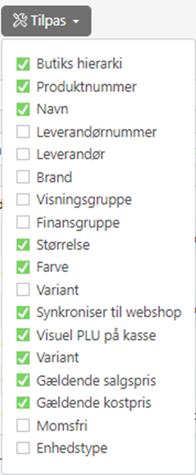 - Dette gør at den kun viser varer med lagertal, dette betyder den ikke viser varer som fx gavekort eller andre varer der ikke har lagertal.