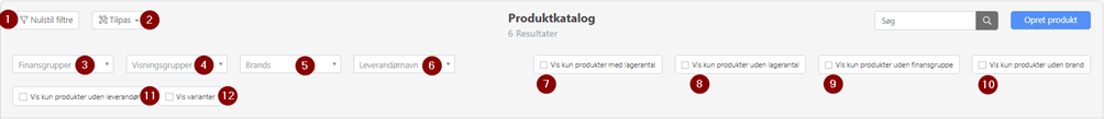 Brug filtreringsværktøjerne til hurtigt at finde specifikke produkter og få vist præcis de varer, der matcher dine kriterier – uanset om du søger på lagerstatus, brand, leverandør eller grupper.
