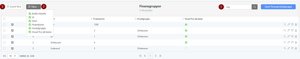 Denne funktion går ind i produkter med den valgte finansgruppe som filter i feltet ”finansgrupper”