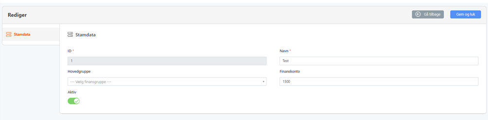 Inde i dette billede er der mulighed for at rette alle informationer ud over ID da denne skal være unik og er bundet på finansgruppen.