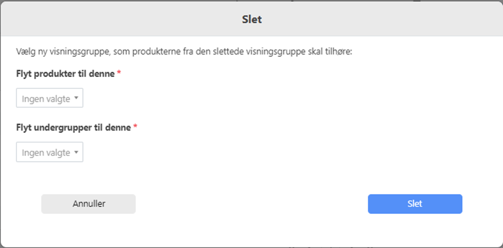 - Flyt produkter til denne: flyt produkter til en anden finansgruppe som er valgt, dette er et krav.