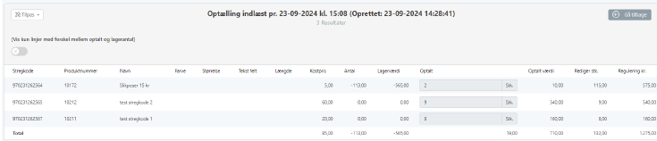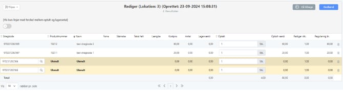 Har stregkoden ikke en relation til et produkt - altså findes stregkoden ikke i systemet - så vil det kun være felterne for stregkoden, optalt stk. og rediger stk. som bliver udfyldt.