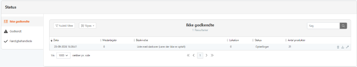 Statussen Ikke godkendte er den status indlæste lister får til en start. Det er rå lister uden nogle former for redigeringer eller andet. De indeholder KUN det, som du har scanner ind i statusmodulet i FlexGO.