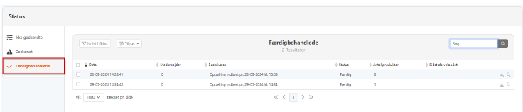 Færdigbehandlede liste er en summeret liste af alle de lister som du færdigmeldte understatus “Godkendte”.
