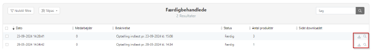 Denne liste kan ikke behandles, men kan enten vises eller downloades ved at trykke på Hent og eller Detaljer i højre side.