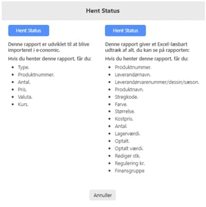 Den ene kan man bruge til import i regnskabsprogrammet E-conomic.