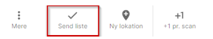 Efter du er færdig med optælling af en lokation kan du trykke på knappen Send liste. Dette vil tømme lokationen og sende den til FlexPOS BackOffice. Dette skal gøres pr. lokation.