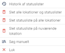 Ved Slet alle lokationer og statuslister, vil alle lokationer og deres indscannede varer bliver slettet.