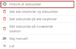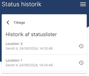 Denne menu giver et overblik over eventuelle sendte statuslister. Herfra kan man også gendanne listen, hvis det er ønsket.