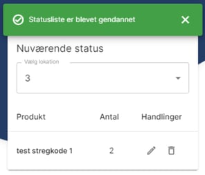 Ved Slet statusliste på nuværende lokation vil alle varer på nuværende lokation blive slettet.