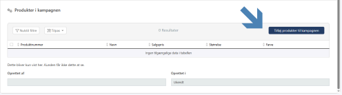Tryk på ‘Tilføj produkter til kampagnen’ for at finde de produkter, som skal være en del af kampagnen