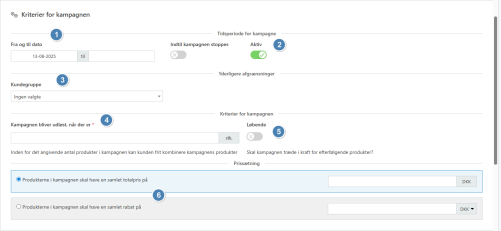 - Fane 2 viser hvornår kampagnen er gyldig, om denne er aktiv, og hvilken rabat der skal gives