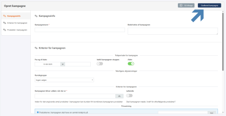 NB: Hvis kampagnen ikke skal have en udløbsdato, tryk på ‘’indtil kampagne stoppes’’
