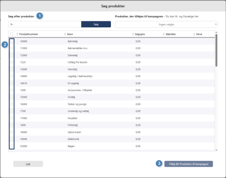 - Sæt flueben ud for de ønskede produkter som skal med i kampagnen