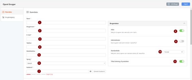 Her opretter og konfigurerer I Backoffice-brugere – fra stamdata og loginoplysninger til adgangsniveau og rettigheder, så hver medarbejder får præcis den adgang, der matcher deres rolle.