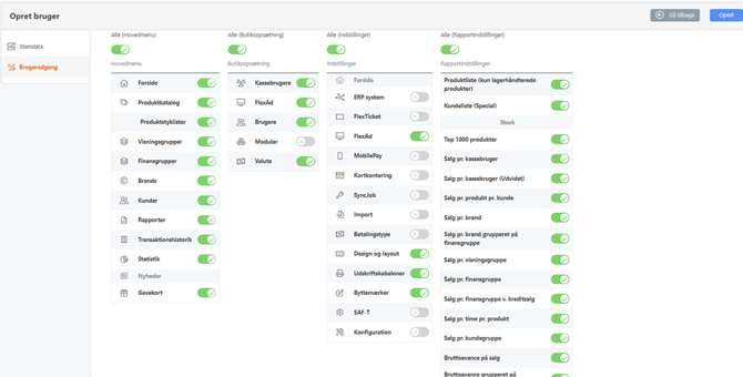 Brugere kan konfigureres alt efter hvad de skal kunne se, hvis i er i tvivl om noget er det bedst at tage fat i support omkring spørgsmål dog opretter vi ikke brugere på vegne af butikker.