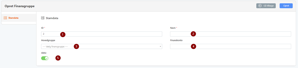 Efter udfyldning af data kan man trykke på opret for at oprette finansgruppen.