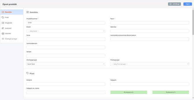 Opret produkt i BackOffice