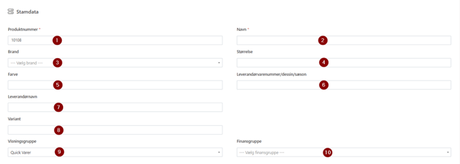 - Dette felt bliver automatisk udfyldt med næste unikke nummer (starter ved 10001)