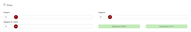 - Denne udfyldes automatisk ved indtastning af ”Salgspris”