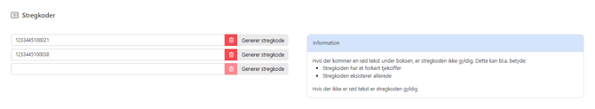 - Man kan genere stregkoder på varen med ”generer stregkodeknappen”