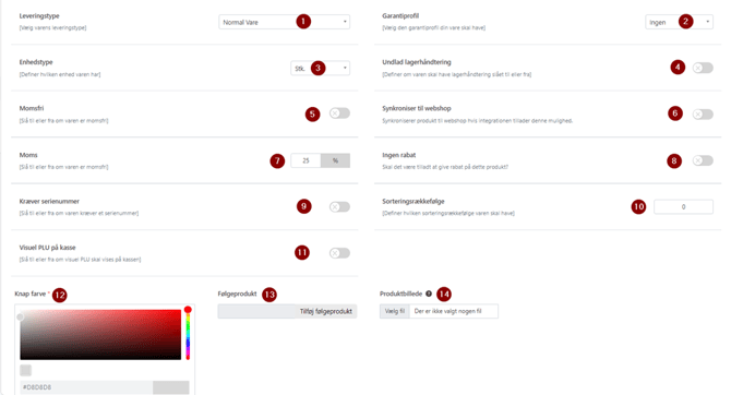 - Hvis denne er deaktiveret vil produktet ikke vises på kassen som en vareknap, den kan dog søges frem.