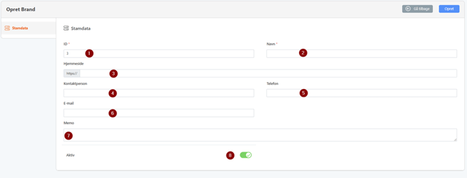 Inde i dette billede er der mulighed for at rette alle informationer ud over ID da denne skal være unik og er bundet på brandet.