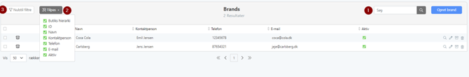 - I dette felt kan man søge via navn eller ID på forskellige brands.