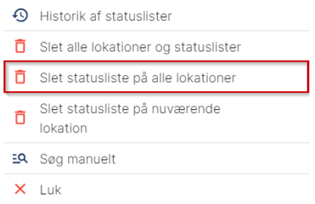 Slet statuslister på alle lokationer