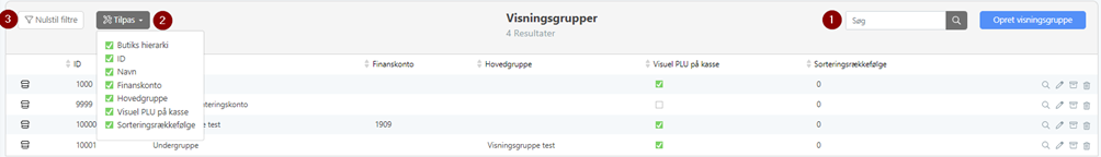 Få kontrol over dine visningsgrupper via søgning, filtrering og redigering – og sikr korrekt struktur ved flytning af produkter og undergrupper før sletning.