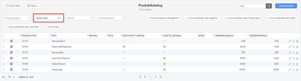 Denne funktion går ind i produkter med den valgte visningsgruppe som filter i feltet ”Visningsgrupper”